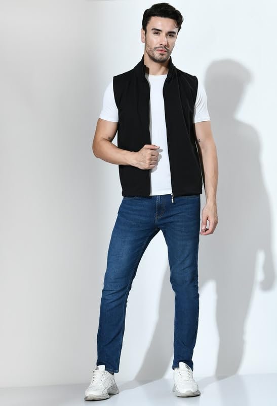 Men Solid Fleece Warm Zipper Sleeveless Jacket for Winters