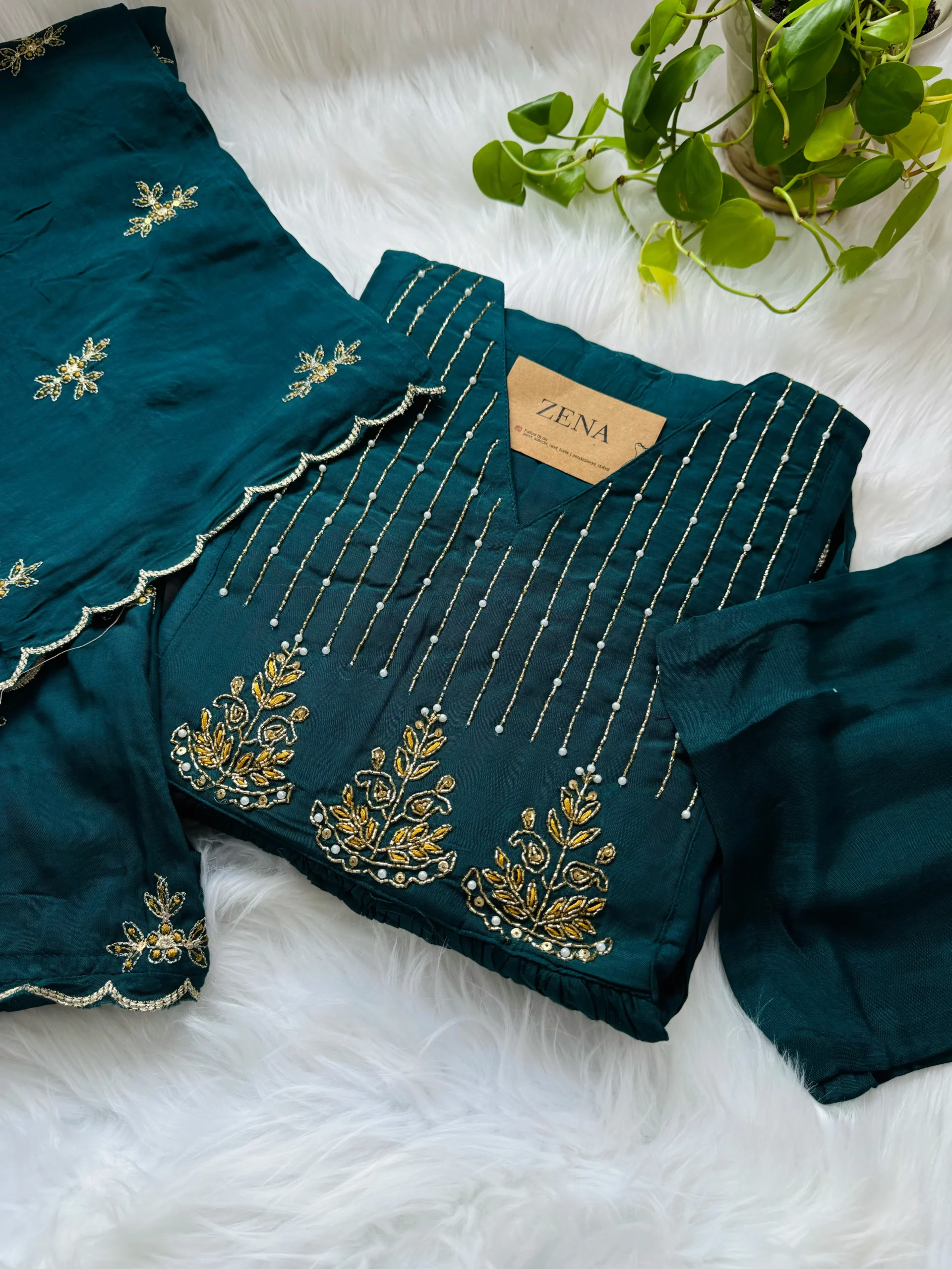 ๐งต Detailing: Intricate handwork on neckline and yoke for a refined touch