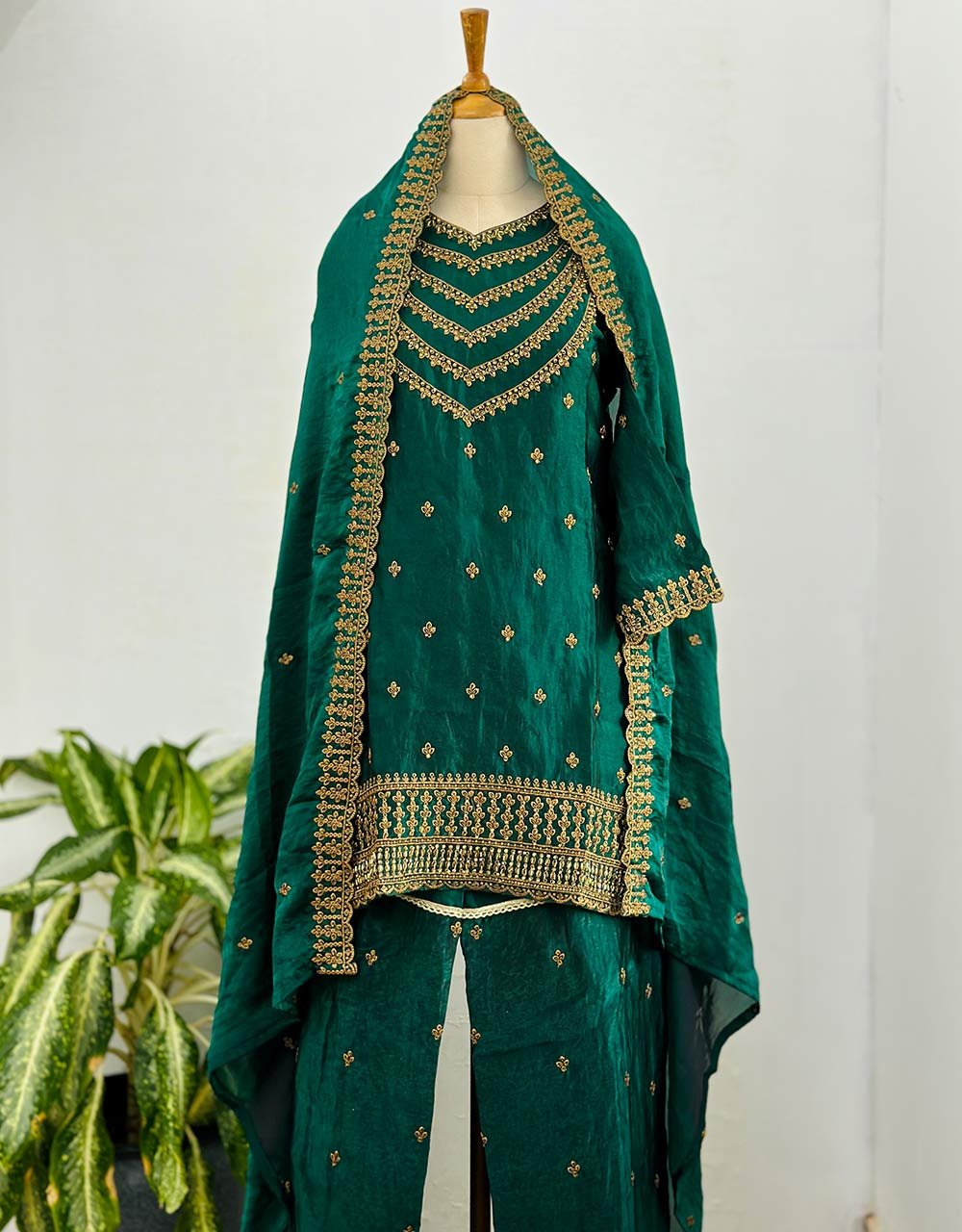 Ready to Wear Green Shimmer Silk Party Wear Suit – Dazzle with Elegance